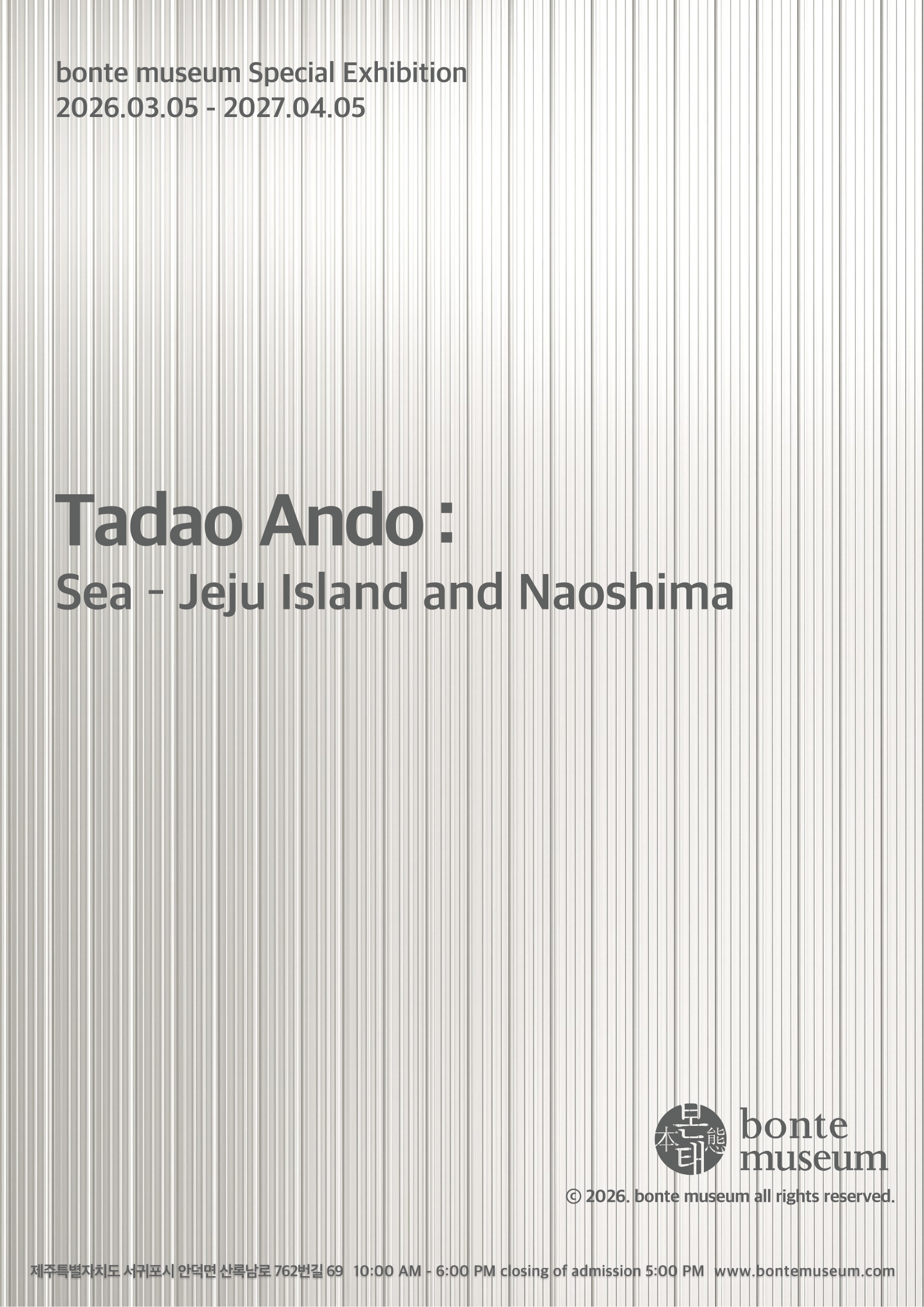 세계적인 건축가 안도 다다오의 작품인 본태박물관은 노출 콘크리트, 빛, 물이 조화롭게 어우러진 뛰어난 건축미를 보여줍니다. 총 다섯 전시관으로 구성된 본태박물관은 파블로 피카소, 살바도르 달리, 백남준, 쿠사마 야요이, 앤디 워홀 등 세계적 예술 거장들의 작품과 우리나라 전통 공예의 진수를 느낄 수 있는 공예품들이 조화를 이루어 전시되고 있습니다.